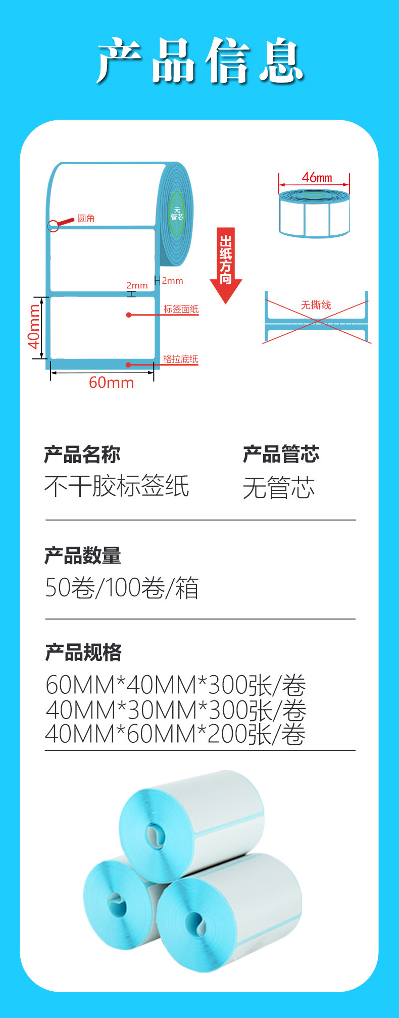 产品名称:驿站热敏不干胶(无管芯)